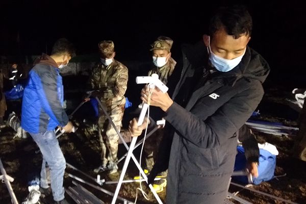 4月1日當(dāng)晚,長須貢瑪鄉(xiāng)紀(jì)委干部跟隨救援隊深入震中江瑪村等地開展災(zāi)情摸排和群眾救助工作,確保各類救災(zāi)物資及時發(fā)放到位。圖為長須貢瑪鄉(xiāng)紀(jì)檢監(jiān)察干部在受災(zāi)群眾臨時安置點參與救災(zāi)帳篷搭建工作。