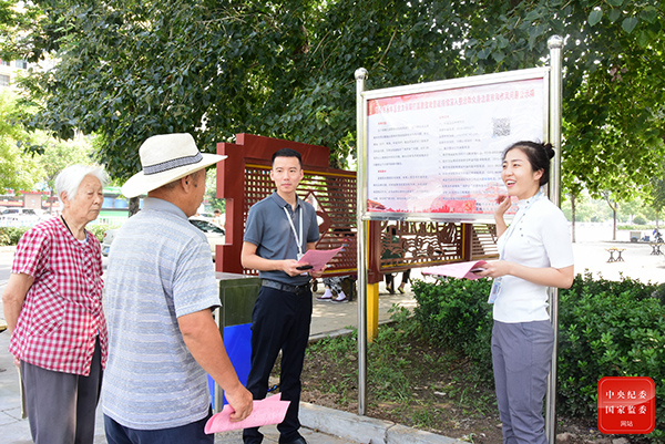 河北省邯鄲市永年區(qū)紀(jì)委監(jiān)委在村委會(huì)、醫(yī)院、公園等公眾場所懸掛公示牌,向群眾發(fā)放告知書,對群眾身邊腐敗和作風(fēng)問題整治內(nèi)容進(jìn)行現(xiàn)場講解,提高群眾知曉率。(河北省邯鄲市永年區(qū)紀(jì)委監(jiān)委 朱照坤 攝)