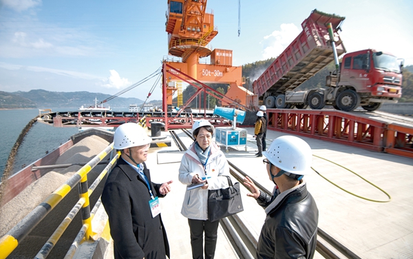 重慶市萬州區(qū)紀(jì)委監(jiān)委圍繞推動成渝地區(qū)雙城經(jīng)濟圈建設(shè)跟進監(jiān)督,保障重點工程順利推進、廉潔高效。圖為萬州區(qū)紀(jì)檢監(jiān)察干部深入重點水運項目新田港現(xiàn)場了解情況。 攝影/冉孟軍(萬州區(qū)紀(jì)委監(jiān)委干部)