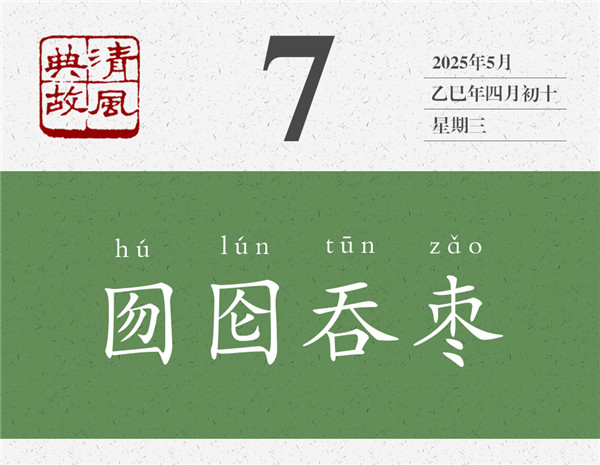 囫圇,就是完完整整的意思;把棗子完完整整地吞咽下去,就叫“囫圇吞棗”。我們常說的“囫圇吞棗”,原來是一個(gè)傻子自作聰明的“發(fā)明”。雖然完完整整地吞下了一個(gè)棗子,但嚼也不嚼,連棗核也不用吐,連棗子什么味道也不用嘗,直接就咽下去了,這是聰明之舉嗎?吃東西為什么要咀嚼,既是為了品嘗滋味、享受過程,也是為了更好地消化吸收、獲取營(yíng)養(yǎng)。后世即以“囫圇吞棗”為典,比喻學(xué)習(xí)或借鑒過程中的死記硬背、照本宣科現(xiàn)象??此茡?jù)為己有了,實(shí)則只是走了個(gè)過場(chǎng)而已。朱自清《論詩學(xué)門徑》:“一個(gè)高中文科的學(xué)生,與其囫圇吞棗或走馬看花地讀十部詩集,不如仔仔細(xì)細(xì)地背誦三百首詩。”