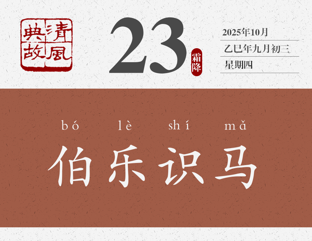 春秋秦穆公時(shí),有一個(gè)著名的相馬師叫孫陽(yáng)。因?yàn)樯裨拏髡f(shuō)中,掌管天馬的神仙叫伯樂(lè),人們?yōu)榱吮硎緦?duì)孫陽(yáng)的敬佩,就稱他為伯樂(lè)。屈原《九章•懷沙》以及《莊子•馬蹄》《列子•說(shuō)符》都曾經(jīng)提到過(guò)伯樂(lè)?!稇?zhàn)國(guó)策•楚策四》里,春申君的舍人汗明,向春申君講了一個(gè)關(guān)于千里馬的故事:“夫驥之齒至矣,服鹽車而上太行。蹄申膝折,尾湛胕潰,漉汁灑地,白汗交流,中阪遷延,負(fù)轅不能上。伯樂(lè)遭之。下車攀而哭之,解纻衣以冪之。驥于是俛而噴,仰而鳴,聲達(dá)于天,若出金石聲者,何也?彼見(jiàn)伯樂(lè)之知己也。”