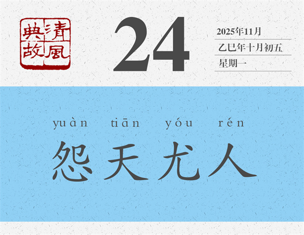 朱熹《論語集注》對“不怨天,不尤人”的理解要簡潔得多,也深刻得多:“不得于天而不怨天,不合于人而不尤人。”《荀子·榮辱》則更進(jìn)一層:“自知者不怨人,知命者不怨天。”能夠看清自己的人就不會(huì)去埋怨別人,那么埋怨誰呢,當(dāng)然是埋怨自己了;能夠知道自己命運(yùn)的人就不會(huì)怪罪于天,那么怪罪誰呢,當(dāng)然是怪罪自己了。后世則反“不怨天,不尤人”之意,而以“怨天尤人”為典,形容遇到不稱心的事情,或者事情不順利的時(shí)候,一味埋怨天,一味責(zé)怪別人。言外之意,就是不從主觀上找原因,不在自己身上找問題。宋人李昌齡《太上感應(yīng)篇》:“苛虐其下,恐嚇于他。怨天尤人,呵風(fēng)罵雨。”