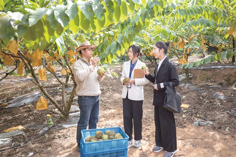 廣東省四會(huì)市紀(jì)委監(jiān)委把“百千萬工程”作為政治監(jiān)督的“頭號(hào)工程”來抓,圍繞產(chǎn)業(yè)發(fā)展、土地資金要素保障、干部作風(fēng)等開展精準(zhǔn)監(jiān)督。圖為近日,該市紀(jì)委監(jiān)委干部到逕口鎮(zhèn)釋迦果種植基地走訪了解有關(guān)情況。胡源 攝