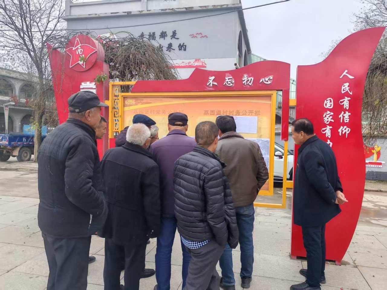 2025年11月20日,村民在南梁鎮(zhèn)荔園堡村村務(wù)公開欄前查看村級(jí)財(cái)務(wù)收支情況。