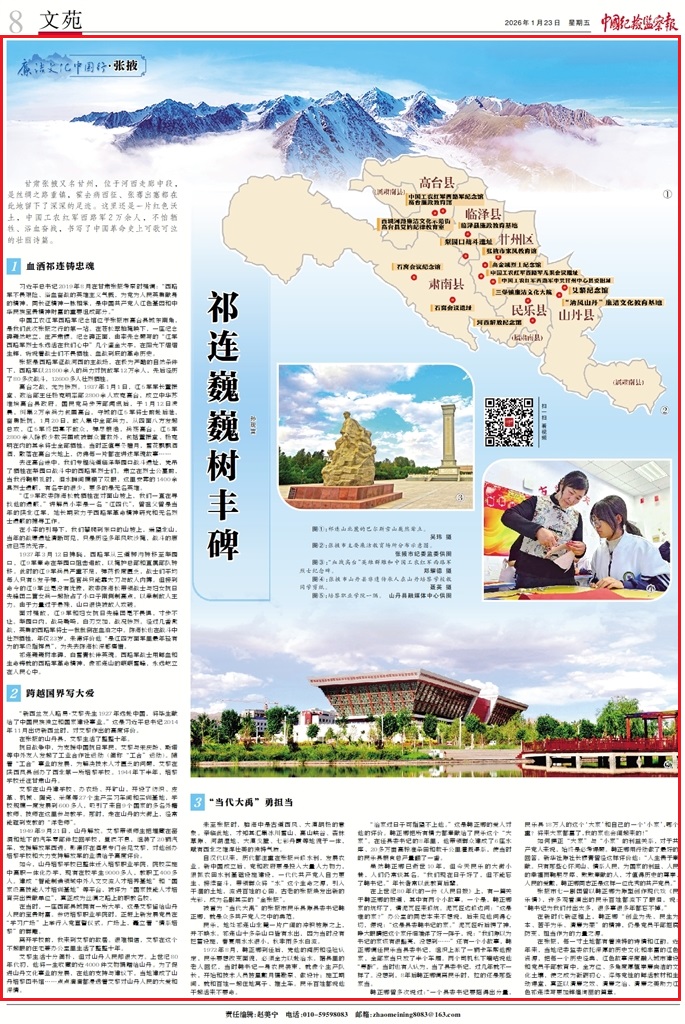 在張掖,每一寸土地都有著獨特的詩情和紅韻。近年來,當(dāng)?shù)丶o(jì)委監(jiān)委依托深厚的歷史文化和豐富的紅色資源,把每一個歷史經(jīng)典、紅色故事深度融入城市建設(shè)和黨員干部教育中,全方位、多角度厚植崇廉尚潔的文化土壤,使之成為砥礪初心、淬煉黨性的鮮活教材和生動課堂,真正以清廉之效、清廉之治、清廉之美助力紅色祁連續(xù)寫更加輝煌絢麗的篇章。(孫現(xiàn)富)