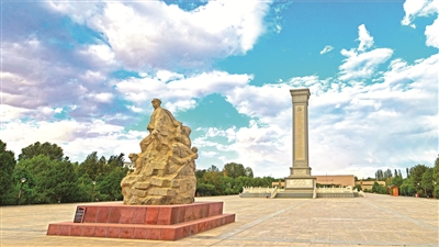 “血戰(zhàn)高臺”英雄群雕和中國工農(nóng)紅軍西路軍烈士紀(jì)念碑。鄭耀德 攝