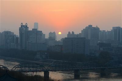 1月1日早晨的蘭州,百年中山橋巍峨矗立,水鳥翱翔在波光粼粼的黃河水面上,晨練的市民漫步黃河岸邊……