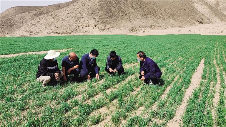 近日,記者在白崖、豐水村看到,農(nóng)業(yè)技術人員正實地查看胡麻、玉米等新品種示范區(qū)種植田塊,并向農(nóng)戶了解生產(chǎn)與管理情況,現(xiàn)場指導田地管理。