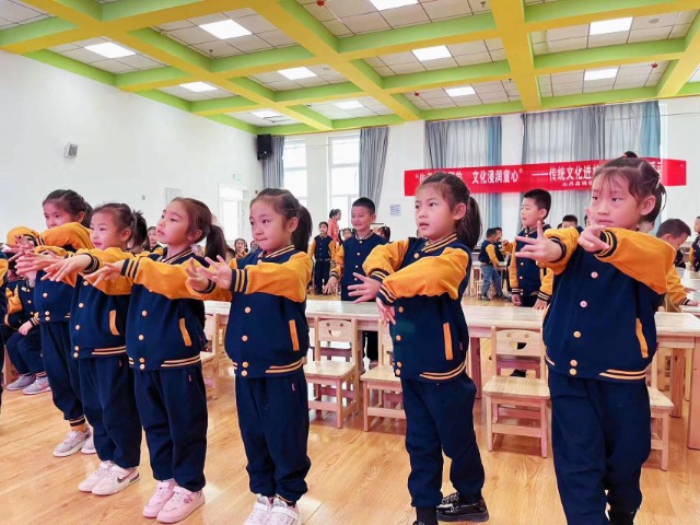 孩子們模仿了戲曲選段中的動作。山丹縣東街幼兒園供圖
