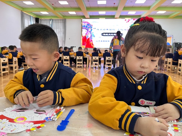 中國教育報(bào)-中國教育新聞網(wǎng)訊(記者尹曉軍通訊員張亮楊兆玉)近日,甘肅省張掖市山丹縣東街幼兒園邀請縣博物館聯(lián)合開展“傳承經(jīng)典國韻文化浸潤童心”傳統(tǒng)文化進(jìn)校園活動?;顒又校┪镳^的老師不僅為孩子們講述了京劇臉譜的內(nèi)涵、特點(diǎn)及分類,還帶領(lǐng)孩子們模仿了戲曲選段中的動作,現(xiàn)場唱了戲曲名段。在老師的講解示范下,孩子們巧手繪制了臉譜?,F(xiàn)場孩子們熱情高漲、積極參與,傳統(tǒng)文化悄無聲息在孩子們心中“生根發(fā)芽”。
