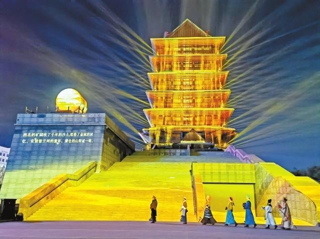 黃河樓燈光秀。奔流新聞·蘭州晨報(bào)記者 熊園 攝