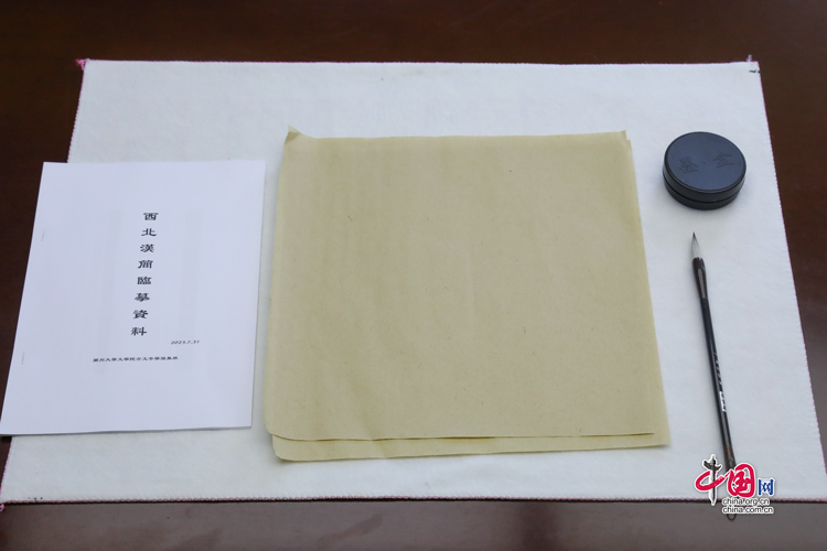 蘭州大學古文字學強基計劃同學臨摹簡牘所用的資料與文具(拍攝于7月31日)。中國網(wǎng)記者 鄭偉 攝