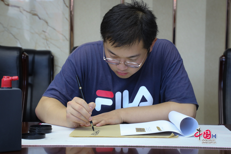 7月31日,蘭州大學古文字學強基計劃同學正在臨摹簡牘。中國網(wǎng)記者 鄭偉 攝