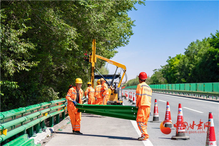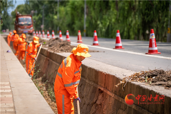 七月以來,蘭州公路發(fā)展中心累計(jì)完成環(huán)蘭公路路面清掃5000余公里,清理路域垃圾1622.4立方米,清理、疏通邊溝542.4公里,清理橋梁伸縮縫506道、泄水孔1922個,橋涵清淤493.3立方米,更換維修波形梁護(hù)欄、防眩網(wǎng)等交安設(shè)施1095米,油路修補(bǔ)6284.3平方米,公路預(yù)防性養(yǎng)護(hù)11.445萬平方米,全力打造“暢安舒美”環(huán)蘭公路,為游客出入提供路網(wǎng)保障,讓游客第一印象就對蘭州留下好感。