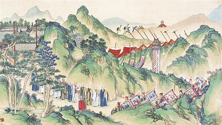 作者將大觀園諸多景致悉數(shù)入畫,畫面包括山水人物、花卉樹木、亭臺(tái)樓閣、珍禽走獸、舟車轎輿、鬼怪神仙及博古雜項(xiàng)等,僅人物就多達(dá)3700人,如此完整精細(xì)的描繪在紅樓繪畫史上十分罕見。