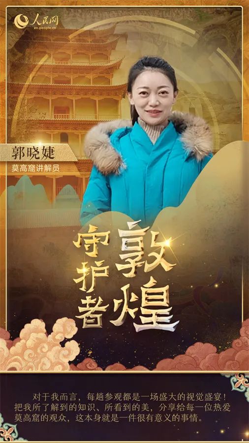 2008年大學(xué)畢業(yè)后,郭曉婕決定回到故鄉(xiāng)敦煌,選擇在莫高窟當(dāng)導(dǎo)游。對于郭曉婕來說,每一次帶領(lǐng)游客參觀莫高窟,都是一場盛大的視覺盛宴。通過精美的壁畫和雕塑,現(xiàn)代人可以一窺古老的絲綢之路,更好地了解燦爛的敦煌文化。