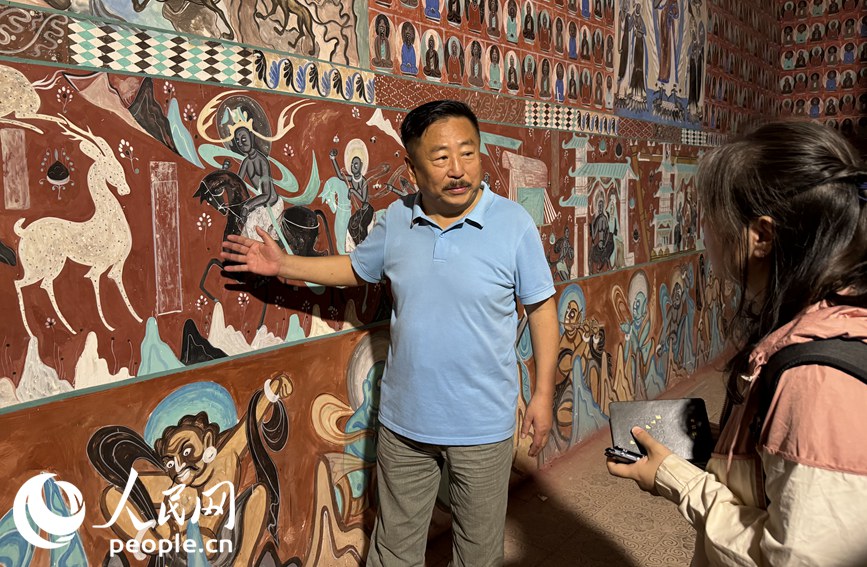 “左邊站著的是打窟人,右邊是畫工和塑匠,都是曾經鑄就莫高窟輝煌的工種。”說著話,尤路平手里的活一刻也沒耽擱。