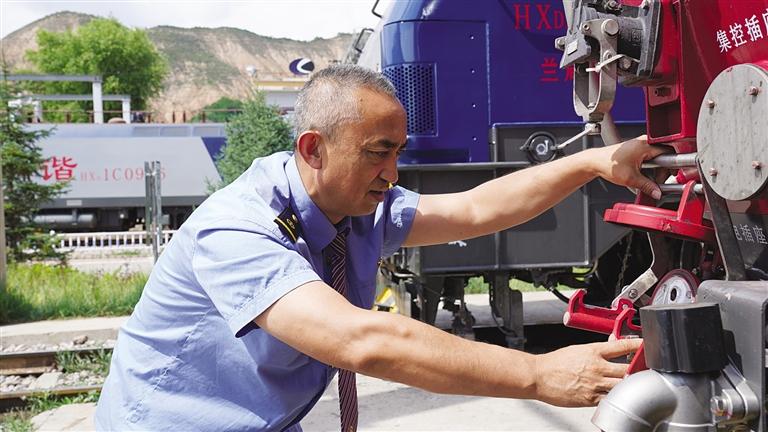 中國甘肅網(wǎng)7月9日訊 據(jù)蘭州晚報報道(記者 譚安麗 文/圖 通訊員 趙童)仲夏時節(jié),陽光明媚,沐浴著大西北的陽光,一列飛馳的鋼鐵巨龍在隴海線群山中穿行。駕駛室內(nèi),56歲的司機(jī)劉曉明手握閘把、眼睛緊緊注視前方,操縱著機(jī)車穿山越谷,快速馳騁。