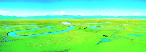 在這里,每看一眼都是風(fēng)景,每行一步都有故事,每一片土地都是一幅絕美的圖畫。黃河從云煙蒼茫的雪域高原流出,冰雪化為淙淙流水,沿途九曲回腸,匯納百川,留下一個(gè)個(gè)碧波蕩漾的湖泊,懷抱起一片片豐腴壯美的草原,孕育著一座座城鎮(zhèn)和村落,養(yǎng)育了各族兒女,播撒著希望,醞釀著生機(jī)……