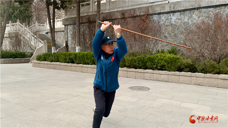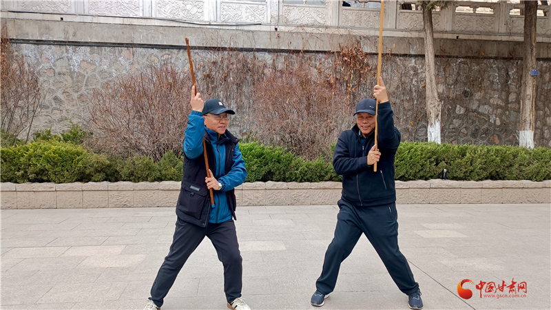 “鞭桿自古就有,甘肅天水、隴南、定西一帶也有習武者,我父親總結了蘭州纏海纏桿體系,為鞭桿百花園再添新力量。”王建國介紹蘭州纏海鞭桿體系。