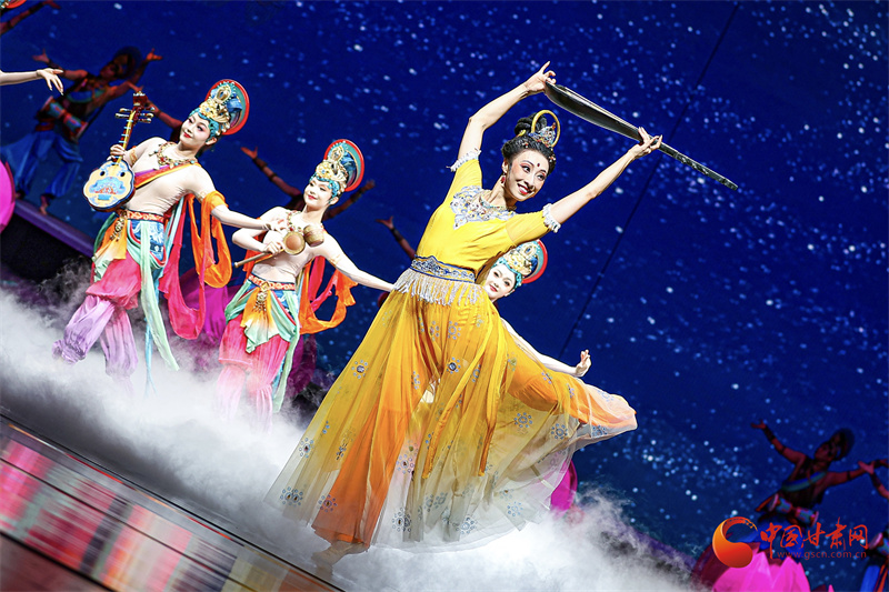 中國甘肅網(wǎng)9月21日訊(西北角·中國甘肅網(wǎng)記者 宋芳科 任磊 黃宛悠 鄭蕓蕓)絲路長風奏和合樂章,花雨繽紛迎四海賓朋。9月20日晚,在第八屆絲綢之路(敦煌)國際文化博覽會即將啟幕之際,敦煌大劇院內(nèi)華燈初上、舞韻生輝、樂聲流淌,舞劇《絲路花雨》新版作為文博會迎賓演出震撼上演。這部承載著46年藝術(shù)積淀的中國舞劇經(jīng)典,以“守敦煌舞韻之根,創(chuàng)時代表達之新”的藝術(shù)實踐,為與會全球嘉賓帶來了一場穿越千年的文化藝術(shù)盛宴。