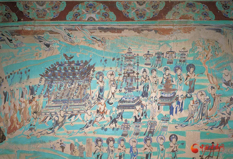 跟隨時(shí)光投印在洞窟墻壁上的畫(huà)卷,人們可以回望千年前的繁華,品析朝代更迭的波瀾,透視先民們的生活??梢哉f(shuō),古代畫(huà)師們用顏料和畫(huà)筆,在宕泉河西岸的崖壁上,留下了精美絕倫的作品,留下了中華文明不斷延續(xù)的線(xiàn)條與色彩。