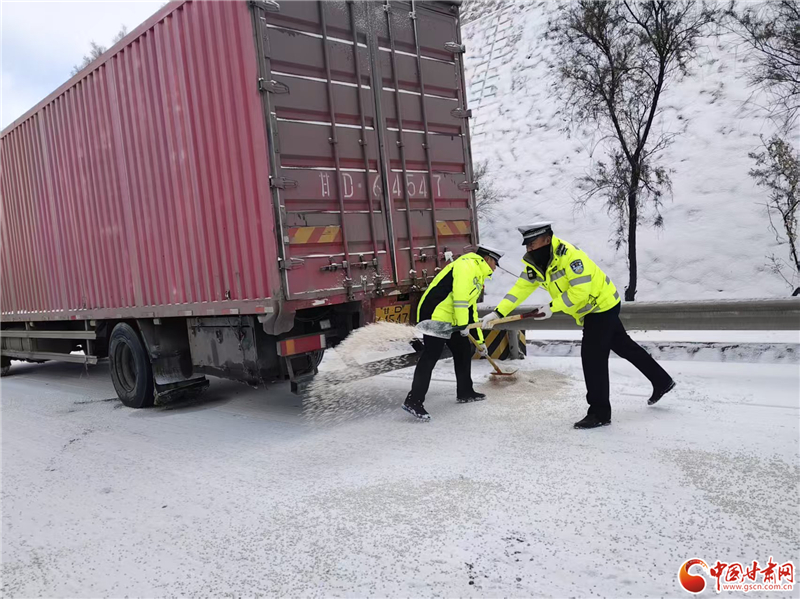 為應(yīng)對降雪影響,蘭州公安交管部門科學(xué)調(diào)配警力,在城區(qū)主次干道、國省道沿線及重點積雪結(jié)冰路段布設(shè)執(zhí)勤點位。針對解放門立交橋等橋梁隧道、長大下坡關(guān)鍵點位,提前預(yù)置融雪劑,聯(lián)合市政養(yǎng)護(hù)部門開展“機(jī)械除雪+人工清掃”作業(yè),確保重點路段“見底露面”。