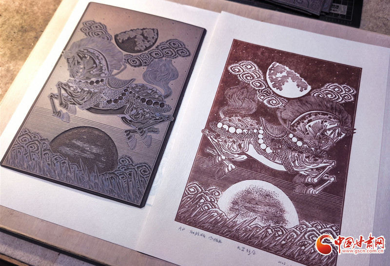 從彩陶紋樣到飛天神韻,從黃河之濱到絲路駝鈴,當(dāng)傳統(tǒng)技藝遇上現(xiàn)代思維,當(dāng)?shù)赜蛭幕鲎踩蛞曇?,趙寧的刀刻人生,既是個(gè)人對(duì)藝術(shù)的執(zhí)著追求,更是一位非遺傳承人對(duì)文化根脈的深情守護(hù)。正如他所說(shuō):“版畫不是冰冷的木板,而是有溫度的文化記憶。”在這方寸之間的刻板上,甘肅的故事正被重新書寫,非遺傳承也在時(shí)代語(yǔ)境下實(shí)現(xiàn)著創(chuàng)造性轉(zhuǎn)化,綻放出更加絢爛的光彩。