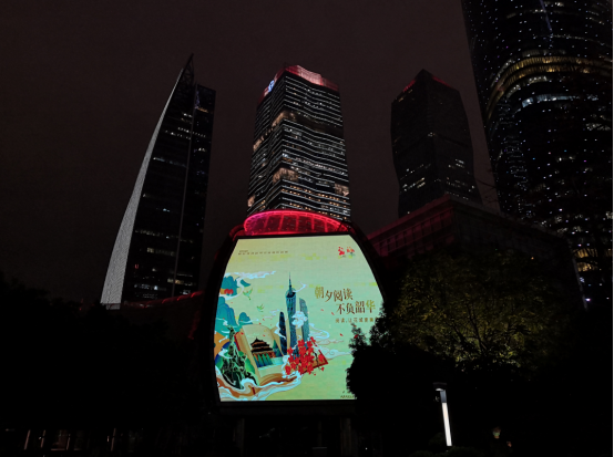 2020廣州讀書月以“朝夕閱讀不負韶華”為主題,廣州塔、花城廣場、北京路、流花展貿(mào)中心、廣州圖書館、廣州購書中心、廣州各大新華書店、廣州地鐵、廣州報刊亭等場所,紛紛以亮燈或張貼主題海報的形式,營造濃厚的閱讀氛圍,讓閱讀力量無處不在、溫暖人心、提振信心。