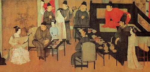 但據(jù)考證,到了北宋,合餐制開始出現(xiàn),最關鍵的原因是北宋飲食文化的商業(yè)化。食材多元、烹飪樣式增多,極大地豐富了宋代餐桌的菜色,教坊酒樓、勾欄瓦舍等公共飲食空間的出現(xiàn),是中國民眾飲食文化的一次重要改革。