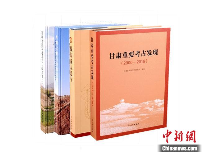 圖為由甘肅省文物考古研究所編著的《甘肅重要考古發(fā)現(xiàn)(2000~2019)》《甘肅省基本建設考古報告集(一)》《絲綢之路與秦漢文明——絲綢之路與秦漢文明國際學術研討會文集》《戰(zhàn)國戎人造車》四部考古著作。甘肅省文物考古研究所供圖