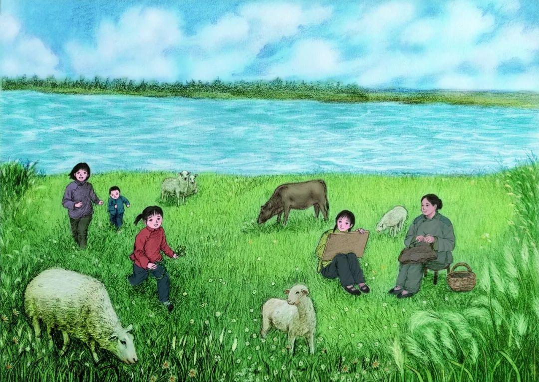 《敦煌小畫師》的故事,以民國時(shí)候國立敦煌研究所初創(chuàng)時(shí)期為背景,以一個(gè)小女孩欣潔的眼光,摹刻了一群以敦煌為文化藝術(shù)圣地而奮斗而獻(xiàn)身的藝術(shù)家和學(xué)者群體,這個(gè)群體以欣潔的父親為代表,他們舍棄溫暖濕潤的家鄉(xiāng),而遠(yuǎn)赴那個(gè)遙遠(yuǎn)荒涼的所在。因?yàn)槟抢镉卸鼗?,因?yàn)槟抢锉4嬷磺Ф嗄昵暗恼滟F文物和彩塑壁畫,還因?yàn)槟抢锛毙栌腥藖肀Wo(hù)、修復(fù)和弘揚(yáng)。他們來了,他們?cè)谶@片戈壁之地安家扎根,在動(dòng)蕩的社會(huì)時(shí)局下開始了為家為國的擔(dān)當(dāng),也開始了人生理想和價(jià)值的實(shí)現(xiàn)。這一切,以一個(gè)孩子的眼光來看,幾乎就是交織著欣喜和失望、歡喜與憂愁,從茫然無知到誠摯熱愛的一段生動(dòng)故事?!抖鼗托‘嫀煛饭适虑楣?jié)的設(shè)定,有起伏有高潮,有親情之愛,有田野之趣,更有人與人之間和諧相助的人性之美,讀起來有聽一首鄉(xiāng)村音樂的韻律感。我覺得,一部優(yōu)秀的兒童文學(xué)作品,應(yīng)該就是這個(gè)樣子。