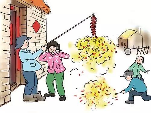 除夕更闌人不睡,厭禳鈍滯迫新歲。漸漸長大,媽媽常常打發(fā)我和妹妹去村里的大商店買些火柴、食鹽、紙張和肥皂等物品。商店里擺著瀏陽鞭炮,100響的一副0.5元,200響的1元。囊中羞澀,可望不可及,悄悄咽下羨慕的涎水。后來,每逢過年,媽媽有時多給幾元錢,讓我買些鞭炮、“大炮”(威力大的單個炮仗)、“兩響炮”和“冒花炮”。于是,除夕夜里,我就時不時到院子里燃放炮仗,有時把三四個鞭炮的引線纏在一起燃放,算是“連環(huán)炮”。