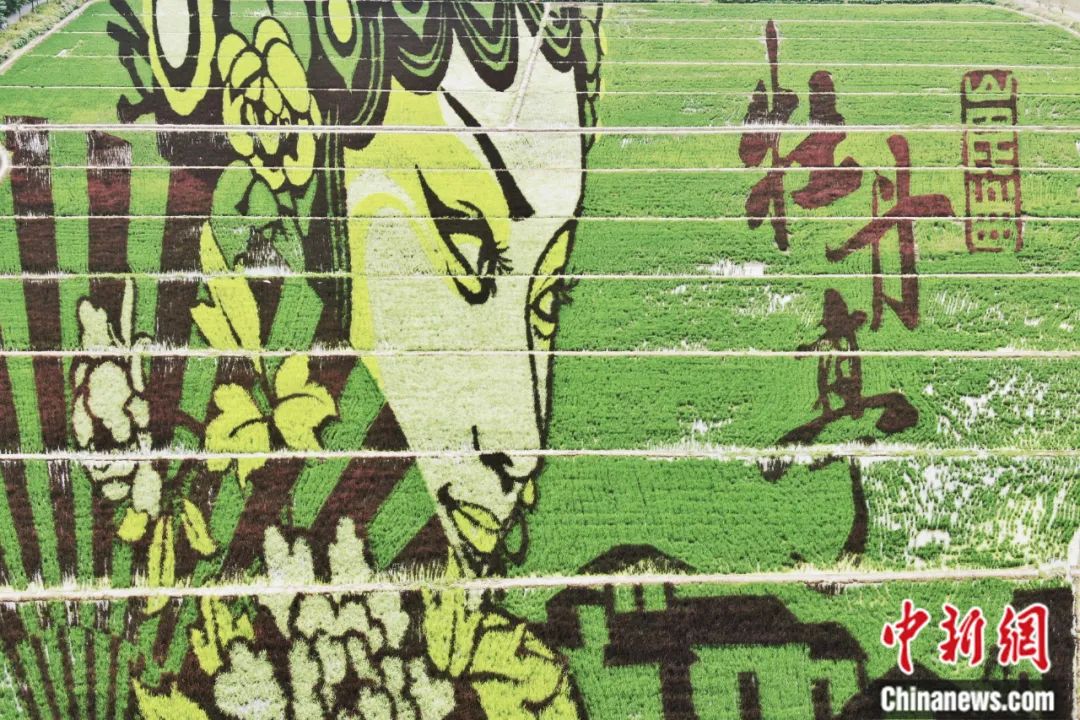 2020年8月,航拍江蘇昆山張浦鎮(zhèn)“牡丹亭”稻田藝術畫。中新社記者 泱波 攝