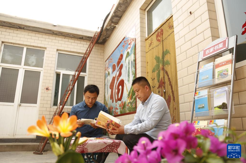 4月10日,邢臺市襄都區(qū)東郭村鎮(zhèn)新華村村民在“美麗庭院”農(nóng)家書屋閱讀書籍。