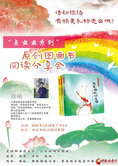 主題活動包括聯(lián)合甘肅少年兒童出版社邀請兒童繪本閱讀與教育專家程曦為小讀者分享“點(diǎn)蟲蟲系列”原創(chuàng)圖畫書,西北書城“快樂童年·好書相伴”主題6.1折兒童圖書展,線上微商城“抽盲盒”,“小劇人”兒童沉浸式閱讀,筱筱老師講繪本故事,親子手工制作“小粽子”,與蘭州市圖書館共同開展“慶六一·迎端午”我是朗讀者活動。