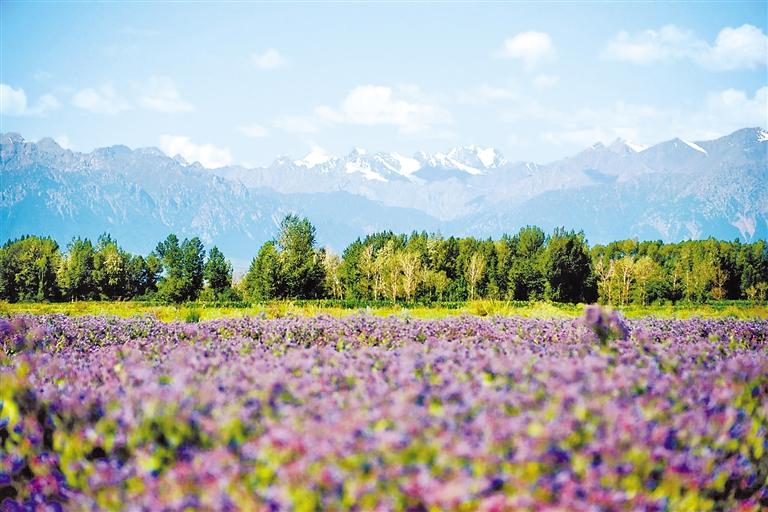 一年四季,祁連山綻放出獨(dú)特韻味。連綿的雪峰,白凈的云朵,綠色的山巒,純凈的湖泊,如茵的草原,悠閑的牛羊,紫色的花海,紅色的丹霞,黃褐色的丘陵,儼然一幅美麗的畫卷。