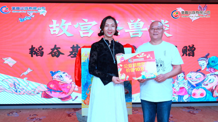 分享會上,童趣出版有限公司向韜奮基金會捐贈了《故宮怪獸談》及世界名著等價(jià)值10萬碼洋的作品。插畫師譚諾專門為韜奮基金會創(chuàng)作了公益閱讀畫作,永久免費(fèi)授權(quán)韜奮基金會作為公益宣傳使用。