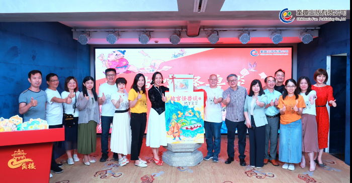 童趣出版有限公司總經(jīng)理史妍(左一)、作者常怡(左二)、插畫作者譚諾(左三)、童趣出版有限公司總編輯劉玉一(右一)為《故宮怪獸談》揭幕。