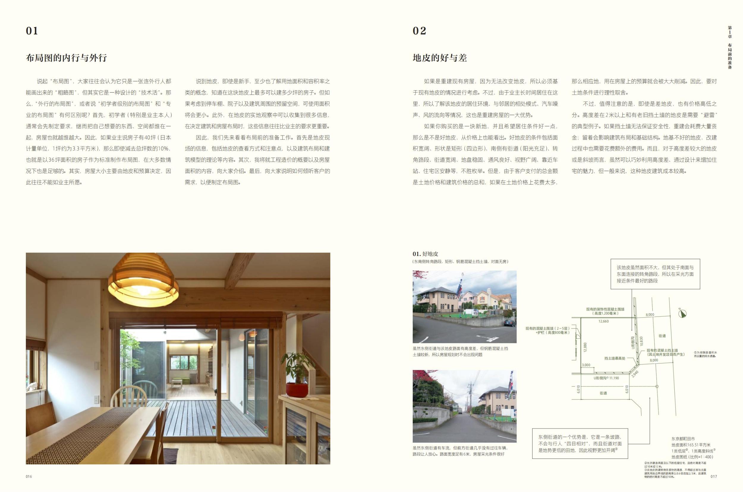 全書(shū)開(kāi)篇結(jié)合地形、地勢(shì)、光照等自然因素,給出了房屋整體構(gòu)造的設(shè)計(jì)原則;介紹了玄關(guān)、客廳、餐廳、廚房、臥室、衛(wèi)生間、兒童房這7大空間的設(shè)計(jì)特點(diǎn),為讀者講解了各功能區(qū)布局的基本原則和基礎(chǔ)建筑知識(shí)。書(shū)中內(nèi)容還包括了屋頂、樓梯、挑空、走廊、隔斷等建筑構(gòu)造的設(shè)計(jì)方式,采用詳細(xì)的操作步驟,結(jié)合圖紙舉例說(shuō)明了平層和2層房屋的建造過(guò)程,并配有家具的陳列布局方式說(shuō)明。