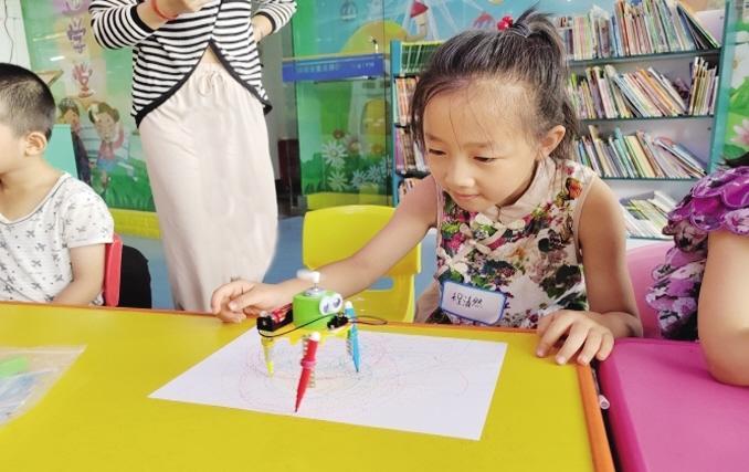 在手工創(chuàng)作環(huán)節(jié),主持人帶領(lǐng)孩子們拼裝可以自動涂鴉的機器人。孩子們一絲不茍地按照要求分別完成了模型組裝、線路連接、通電啟動等拼裝。當小機器人在高速旋轉(zhuǎn)中帶動畫筆起舞,在白紙上勾勒出一圈又一圈的彩色線條時,孩子們發(fā)出了興奮的驚嘆。