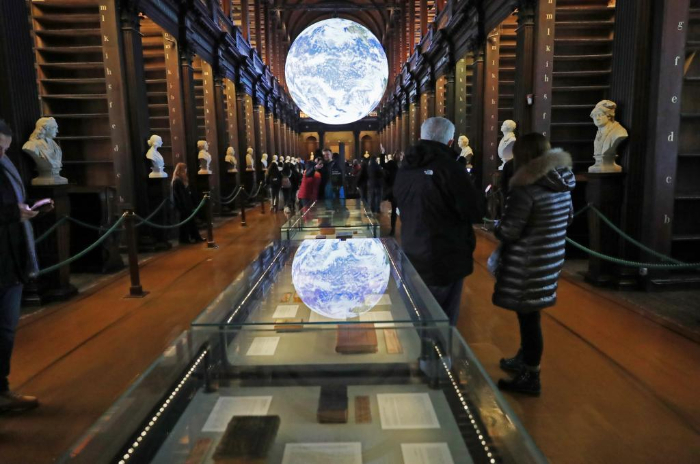 人們?cè)趷?ài)爾蘭都柏林大學(xué)圣三一學(xué)院老圖書(shū)館內(nèi)參觀(1月16日攝)。