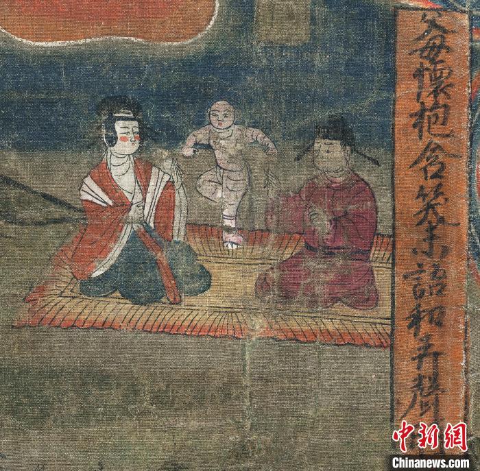 圖為“報父母恩重經(jīng)變絹畫”中的“父母懷抱含笑未語和弄聲時”的畫面。(資料圖)甘肅省博物館供圖