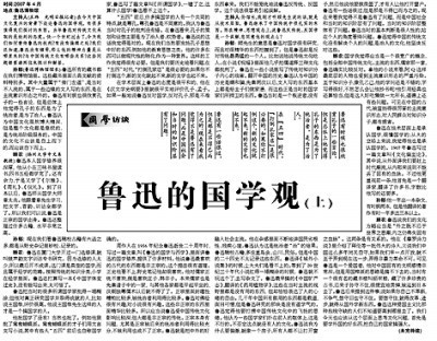 2007年5月31日《光明日報》國學版文章《魯迅的國學觀(上)》