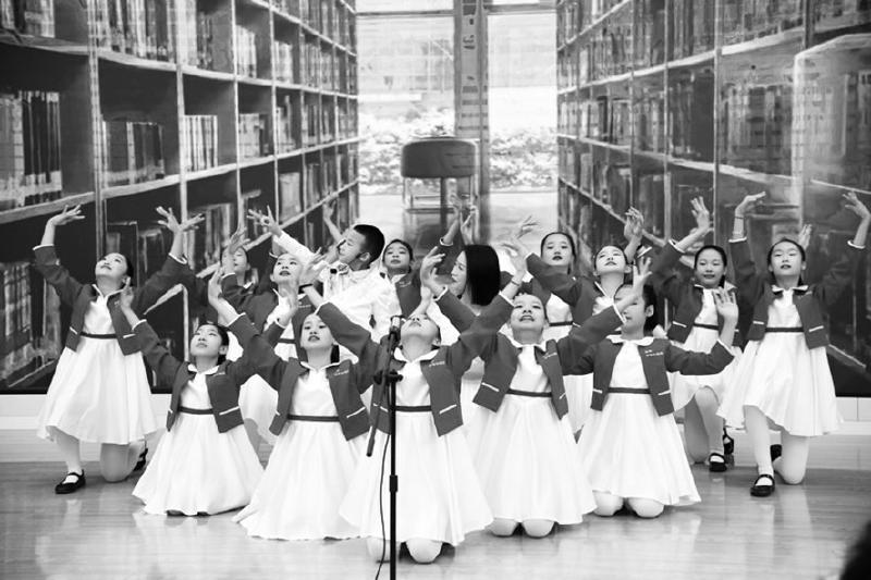 遼寧省開原市民主教育集團(tuán)“納蘭合唱團(tuán)”在發(fā)布會現(xiàn)場表演節(jié)目《老師》,以表達(dá)對老師的熱愛。 遼海出版社 供圖