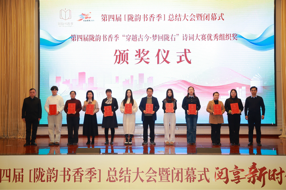 閉幕式上公布并表彰了“優(yōu)秀閱讀推廣活動案例獎”獲獎人員、“‘穿越古今·夢回隴右’詩詞大賽優(yōu)秀組織獎”獲獎人員、“‘閱·見西部’第一季——‘詩歌里的家鄉(xiāng)’(甘肅賽區(qū))最佳人氣獎和優(yōu)秀獎”獲獎人員。