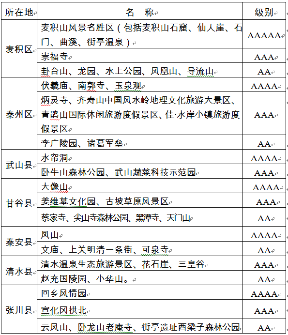 天水市國家A級旅游景區(qū)恢復(fù)開放名單