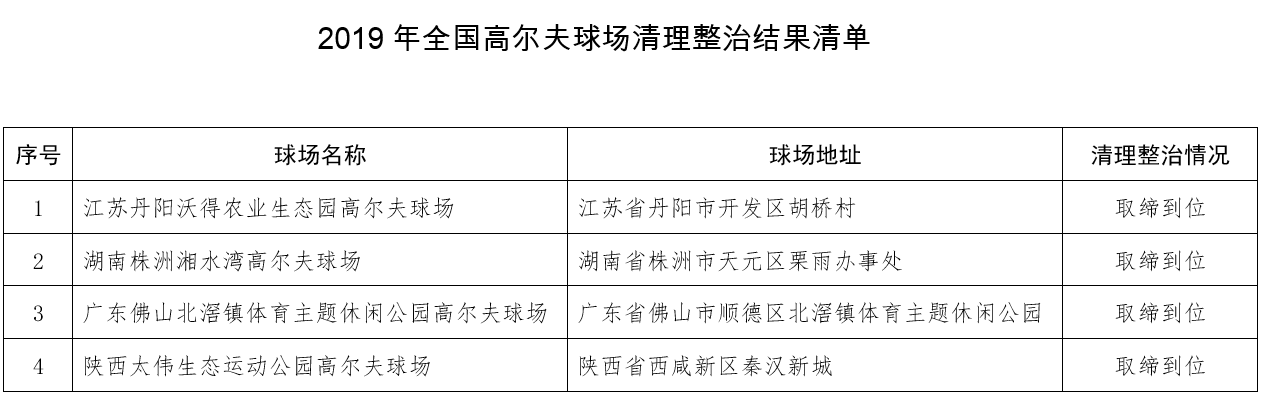 國家部委聯(lián)合公布全國高爾夫球場清理整治情況