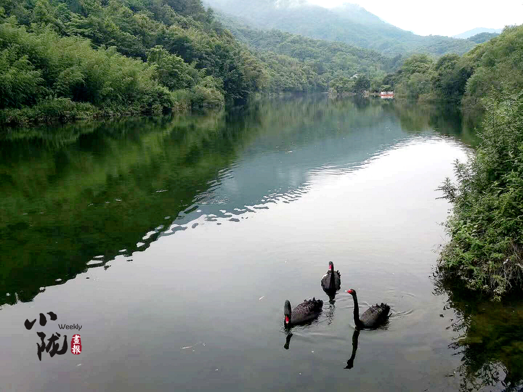 天鵝湖,湖波瀲滟,群山倒映。湖對面遠處是一片處處竹林,郁郁蔥蔥。當(dāng)游弋在湖面上的三只黑天鵝,映入眼簾時,感覺此景更像一副渾然天成的水墨畫,湖邊是大片的草地,造型奇特的古樹名木參差錯落,石桌與石凳散落其間,靜謐和諧,看書、聊天、放松均是不錯的選擇。