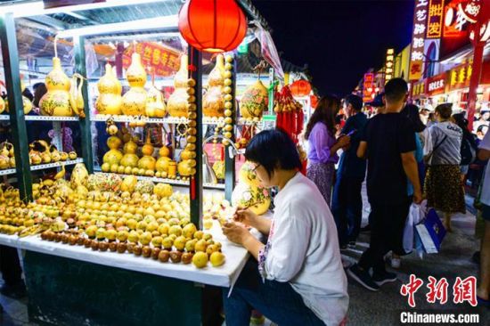 7月29日,游客在敦煌旅游工藝品一條街上漫步,體驗濃郁的民俗風(fēng)情和敦煌文化。 王斌銀 攝
